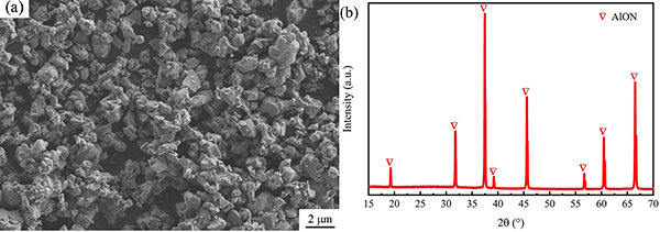 氮氧化鋁通常是指γ-AlON,它是AlN-Al2O3偽二元體系中的一種重要的固溶體化合物,屬于面心立方尖晶石結(jié)構(gòu),F(xiàn)d3m空間群,其中O、N占據(jù)了尖晶石結(jié)構(gòu)中陰離子位置,Al3+占據(jù)了八面體和四面體間隙,其組成為Al(64+x)/3(VAl)(8-x)/3O(32-x)Nx(2.75≤x≤5,V表示空位),是一種具有鋁空位“缺陷態(tài)”的晶體。其粉體不僅是制備氮氧化鋁陶瓷的原料,且由于其特殊的晶體結(jié)構(gòu)而具有壓電催化降解效應(yīng),其粉體在有機(jī)污水處理等環(huán)保領(lǐng)域具有廣闊應(yīng)用前景。